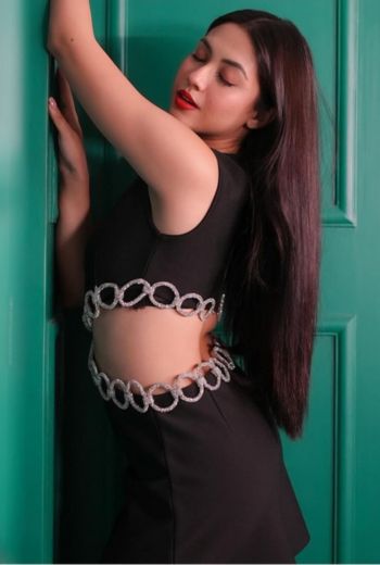 Navya Tiwari in Black Iris Mesh Dress