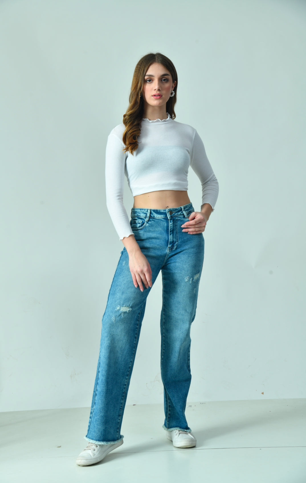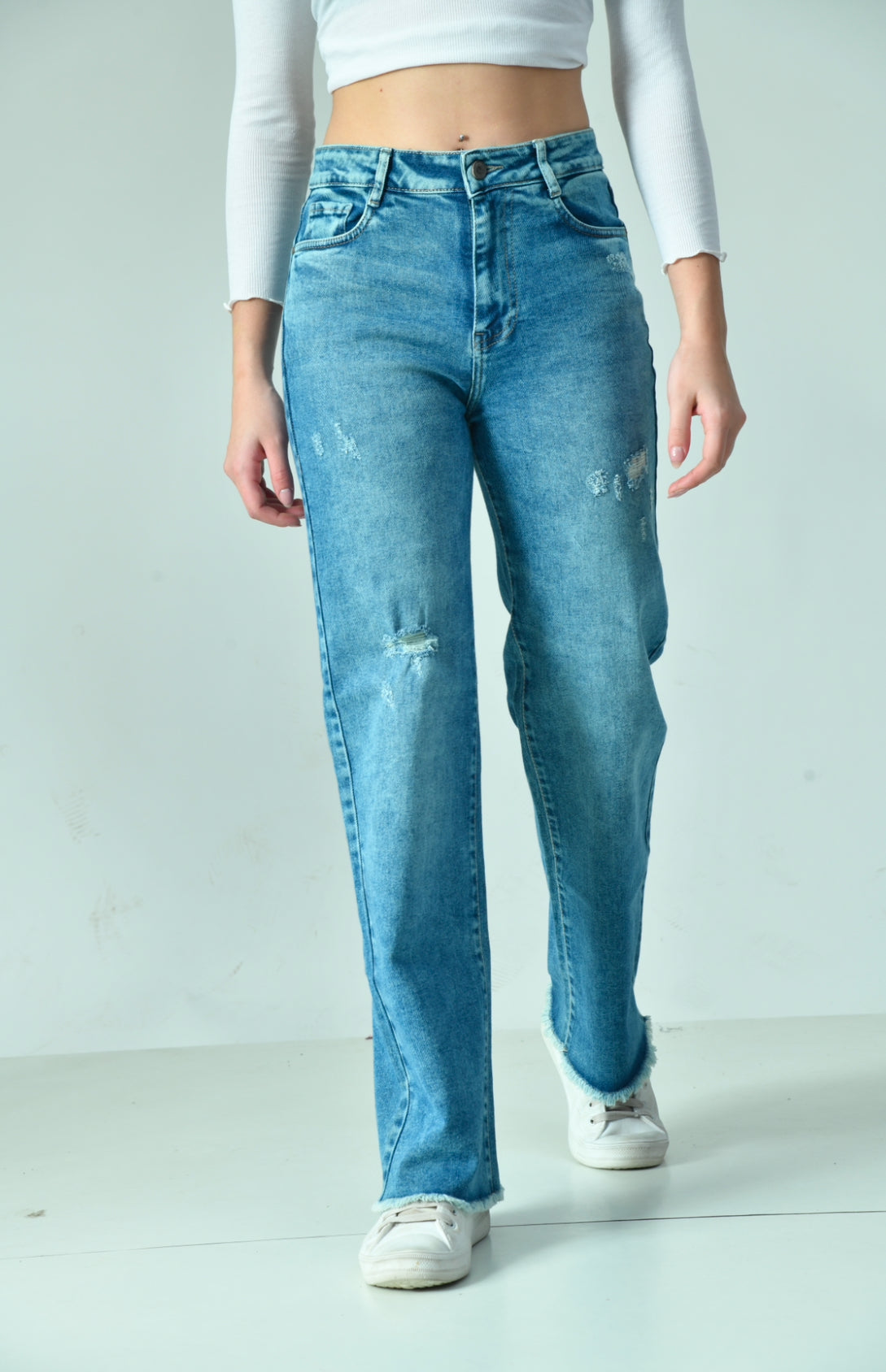 Payment methodsIntroducing the "Midnight Riptide" high-waisted straight-fit denim, designed in a deep, captivating shade of navy blue. These jeans feature artfully placed rips and distressed details, offering a trendy, edgy look while maintaining a refined silhouette. The high waist provides a flattering fit, and the straight cut ensures comfort and versatility. Perfect for adding a touch of rebellious style to your wardrobe, these jeans effortlessly combine contemporary fashion with classic appeal.