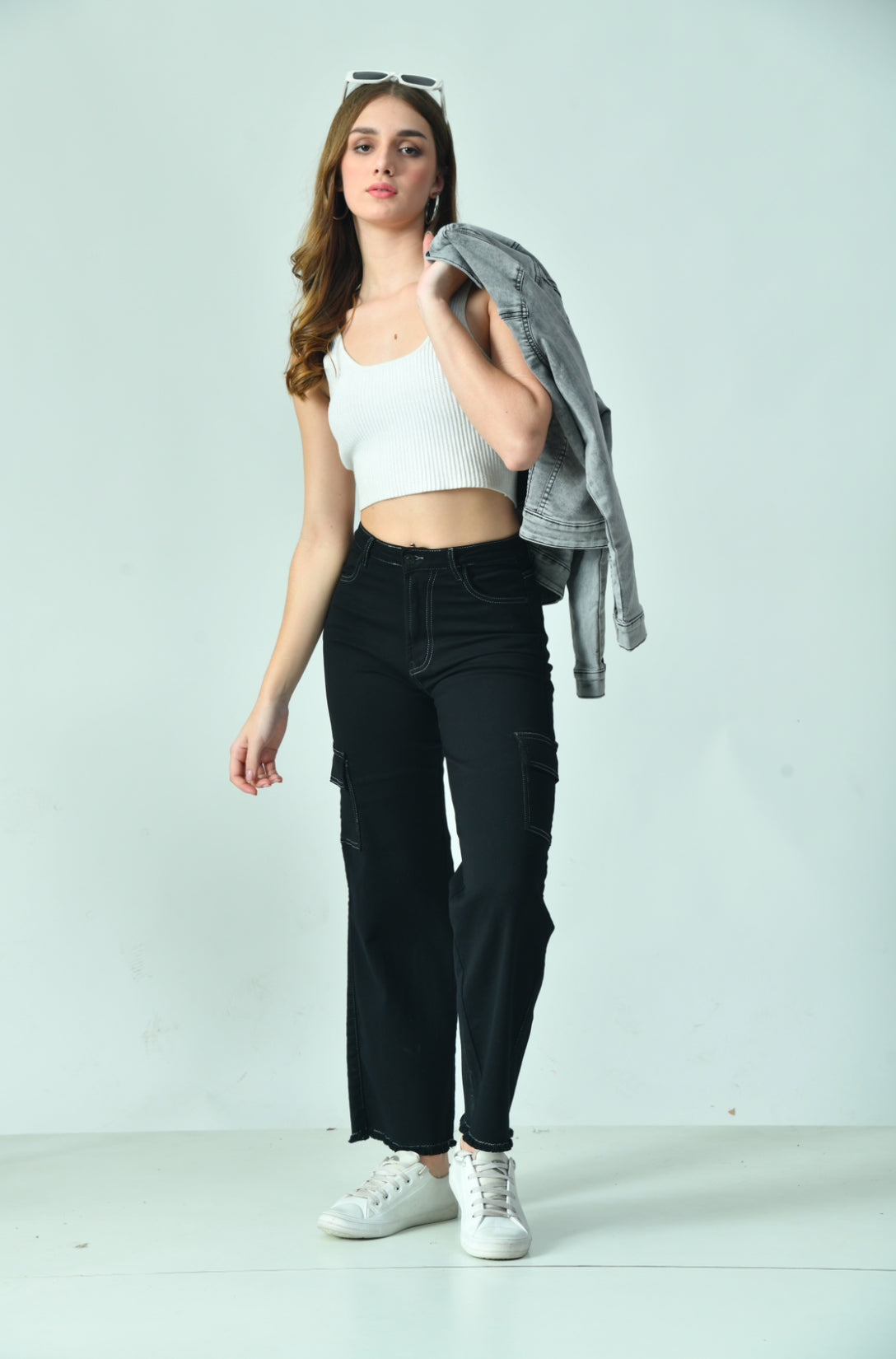Payment methodsIntroducing the "Midnight Soft Cargo" high-waisted straight-fit denim, crafted for comfort and style. This denim comes in a deep, rich black color, resembling the allure of midnight. Designed with soft, stretchable fabric, it offers flexibility and ease of movement while maintaining its structured shape. The cargo detailing adds a utilitarian touch with practical pockets, perfect for everyday essentials. Ideal for those who seek both comfort and functionality without compromising on fashion, these jeans elevate casual chic with a touch of sophistication.