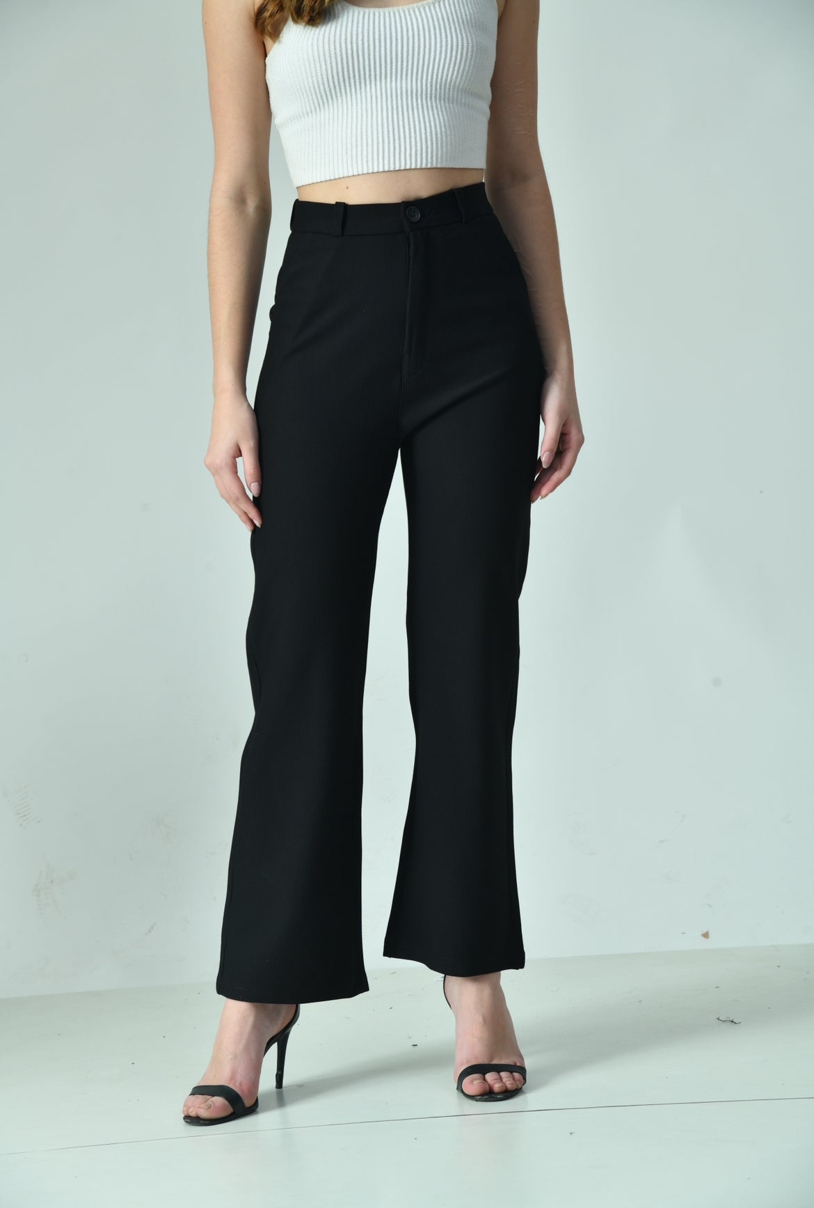 Payment methodsA pair of black pants with a straight fit and ribbed material offers a sleek and modern look. The straight fit ensures a timeless silhouette that falls smoothly from the hips to the ankles, providing a flattering line that elongates the legs. The ribbed texture adds a subtle yet stylish detail, giving the pants a unique and sophisticated appearance. Designed to hug the curves beautifully, these pants highlight the natural shape of the body while maintaining comfort and flexibility. Perfect for both casual and more dressed-up occasions, they can easily be paired with various tops and shoes for versatile styling options.